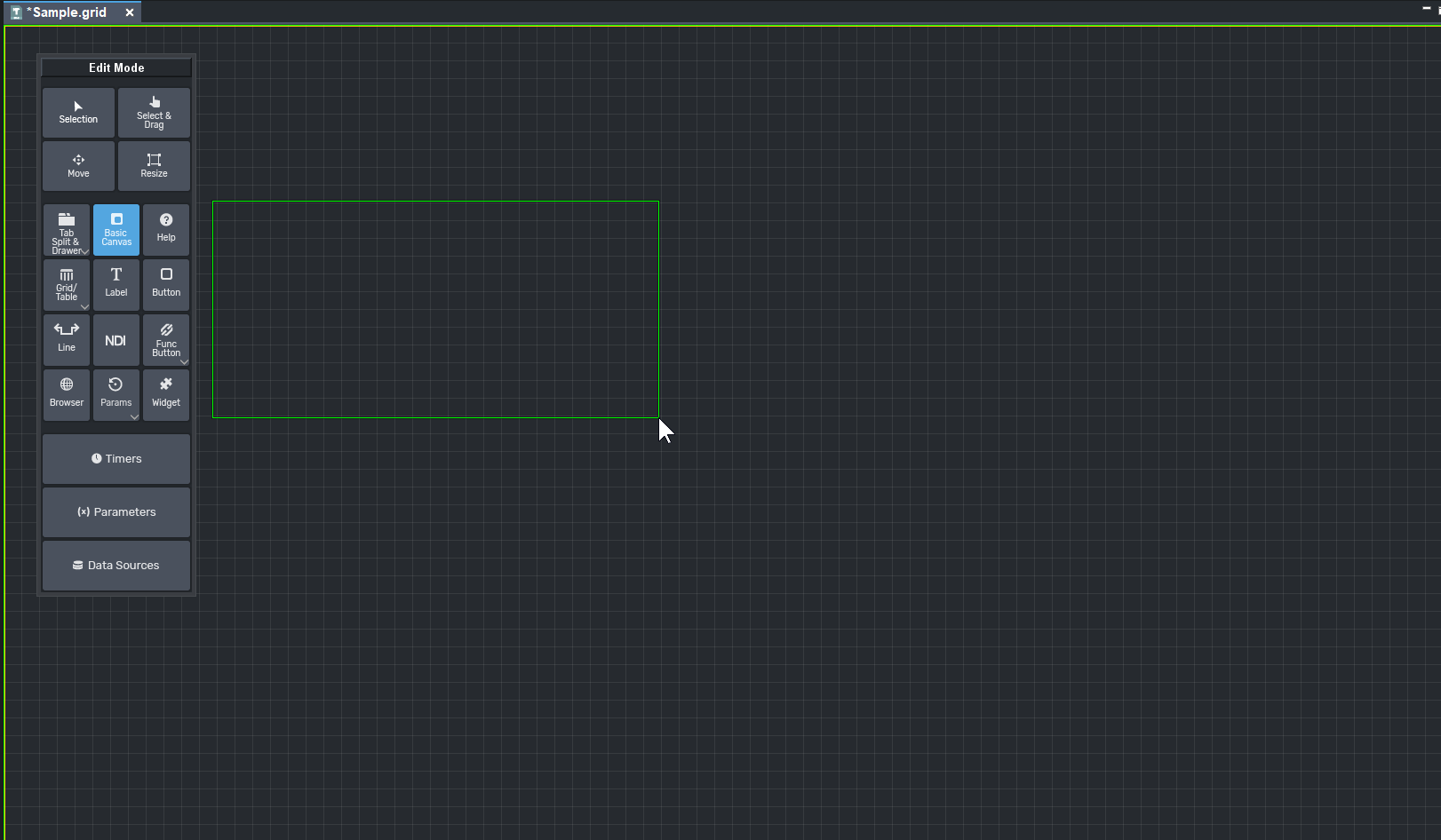 Step 2. Using the Basic Canvas tool click & drag to create a canvas. Then switch to the select and drag tool and double click on the new canvas.