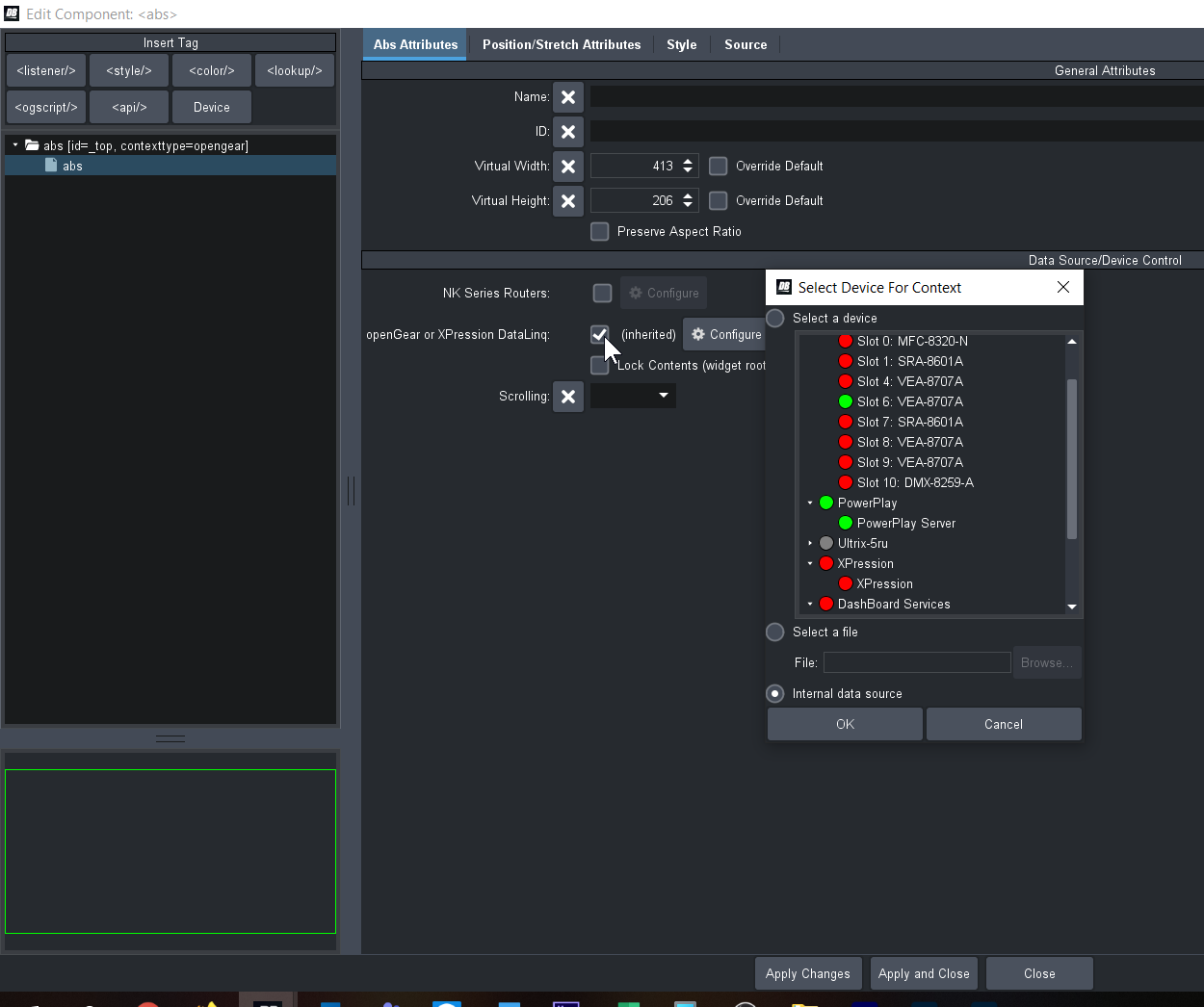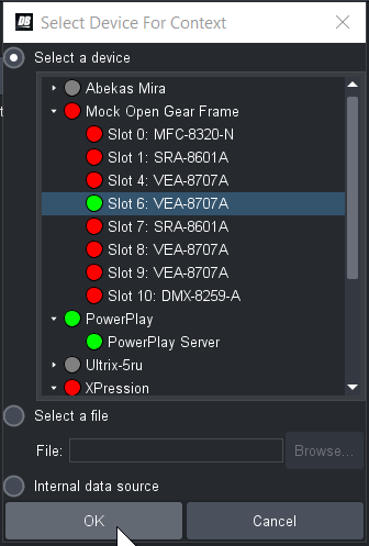 Step 3. Click on the check box that says openGear or XPression Datalinq to the left of it. Then select the "Select a device" option. Finally choose your open gear card for the
