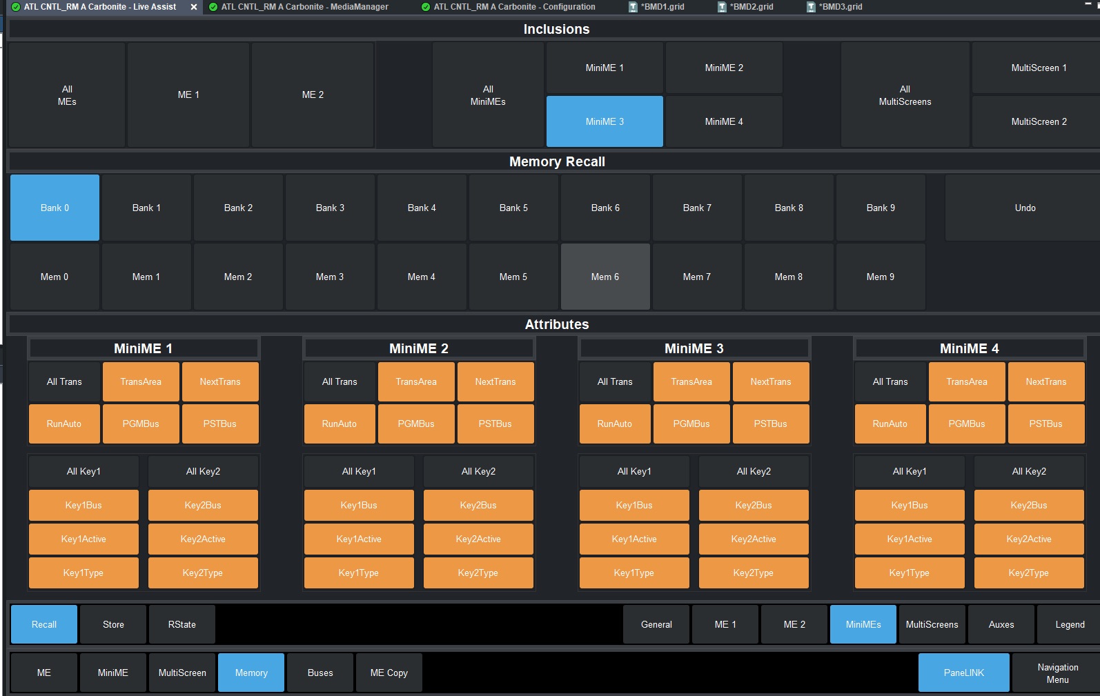 Issue: when I use the multifunction keys to recall my ME1 and MiniME simultaneously, not all keyers/DVEs fully recall. eg; MiniME 3 was used in preshow with 2 keys, 1 of them a DVE. Memory 25 is stored with those keyers off. When recalled as a group, those keyers are still active. If I recall MiniME3 25 by itself the keyers turn off and bus is set to Black as defined in the stored memory.