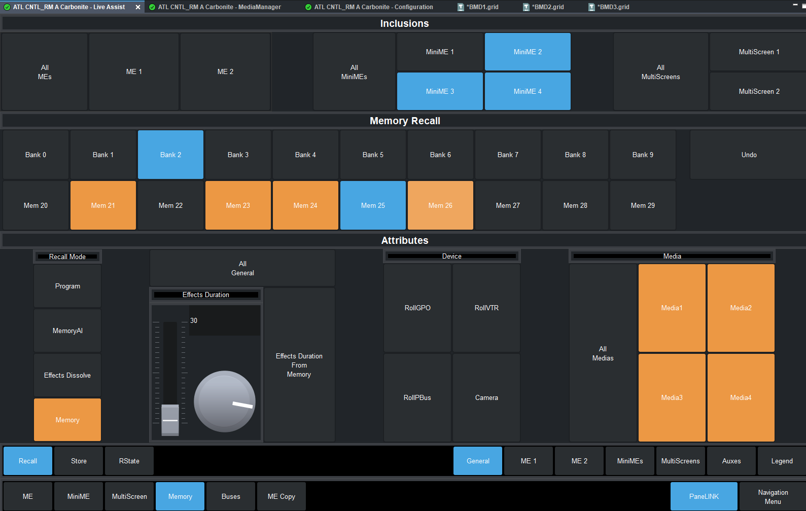 As example of recall simultaneously, I'll light ME1, MiniMe 1 thru 4, and use a bank/memory slot that's stored across all of them in the same position, eg, 25.