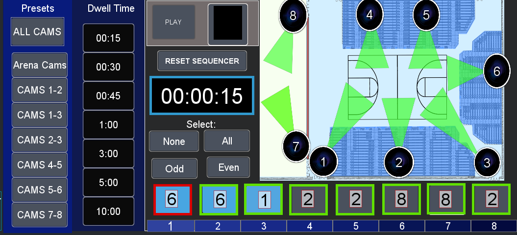 One of the tabs is an AUX auto-switcher that is like a step sequencer. I was hoping I might get some help with this one. I think I've gotten close but am not able to get it to work yet with the last hardest part, incrementing through the steps to send the Rosstalk commands when the timer hits 0, and then loop back to step 1 and continue until stopped.. There are 8 cameras. Each of the 8 steps can select any of these 8 cameras. when the step is toggled on, you can set the value to the label and also to an integer array by pressing the circle camera buttons. I need to figure out the best way to make this happen. When press play.. these values need to be set on the 8 ross talk commands for each step. When the timer hits 0 need to increment through the array(or some other way) and loop. Sending the rosstalk command on each step.