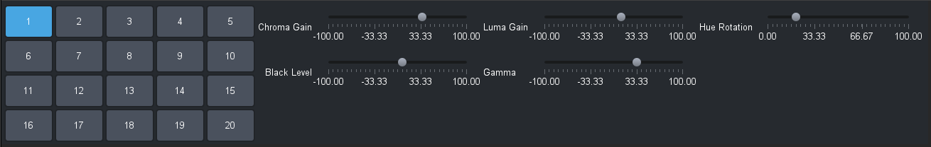 Here is an example panel where I have done the first 5 Proc Amp settings for the first 4 outputs: