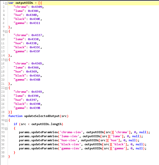 Lastly, if you give each parameter display an ID, you can update it through ogScript to move from one OID to another - you can use this to quickly use the same UI for the ProcAmps for output 1, 2, etc: