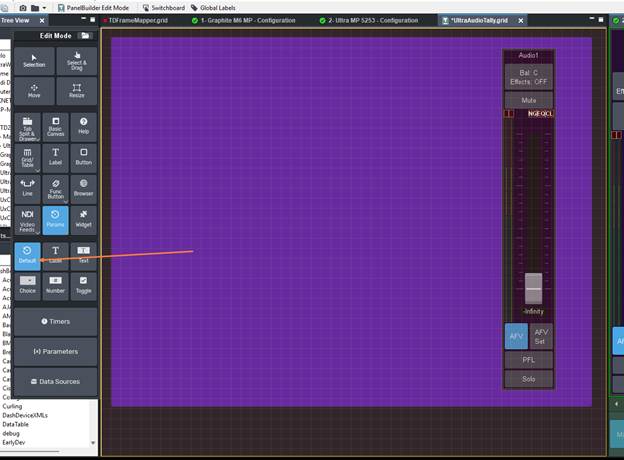We will now Click on the Fader Strip and Drag it to the Left to (Make sure that the Canvas was last click on in the custom Panel so that is the "focus" and is going to be where the Channel strip is trying to be dropped -- we want to make sure the Canvas will become the Switcher Context for Data.