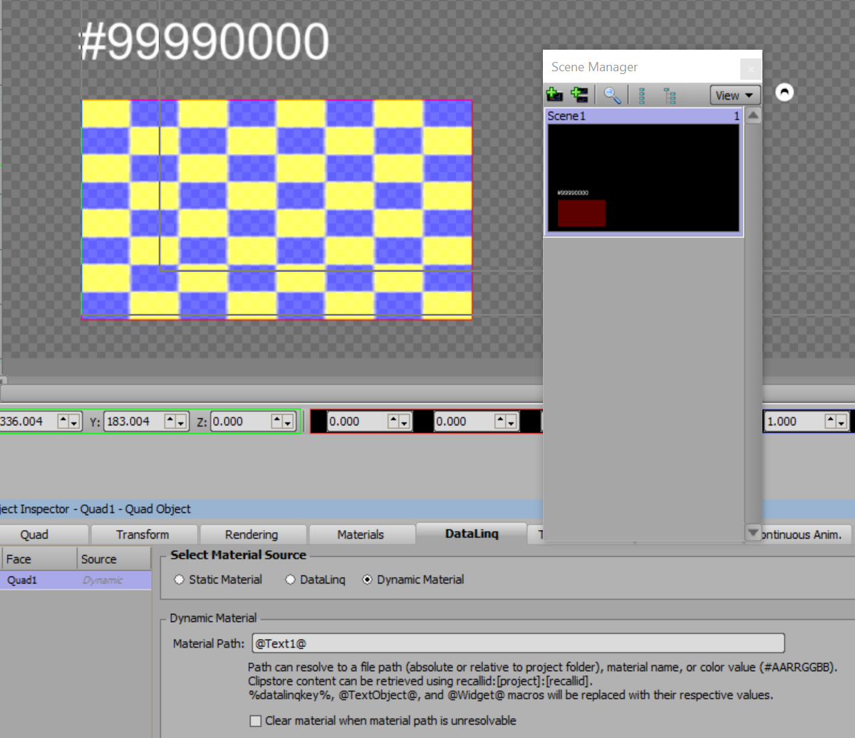 I have a Config Scene with 3 text objects (one for Hue, one for Saturation, one for luminance - or RGB).