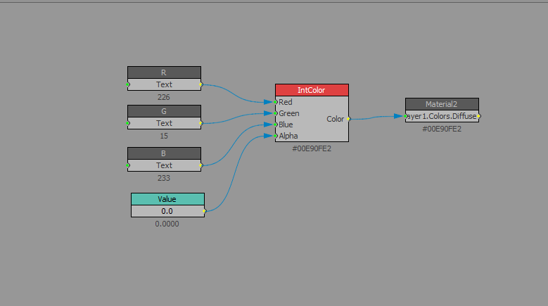 I want to have a process where my operator can input a value into each text field in hopes to change the color of a Material. (Ex: If they want a purple they could input the following, H: 252, S: 87, L: 84).