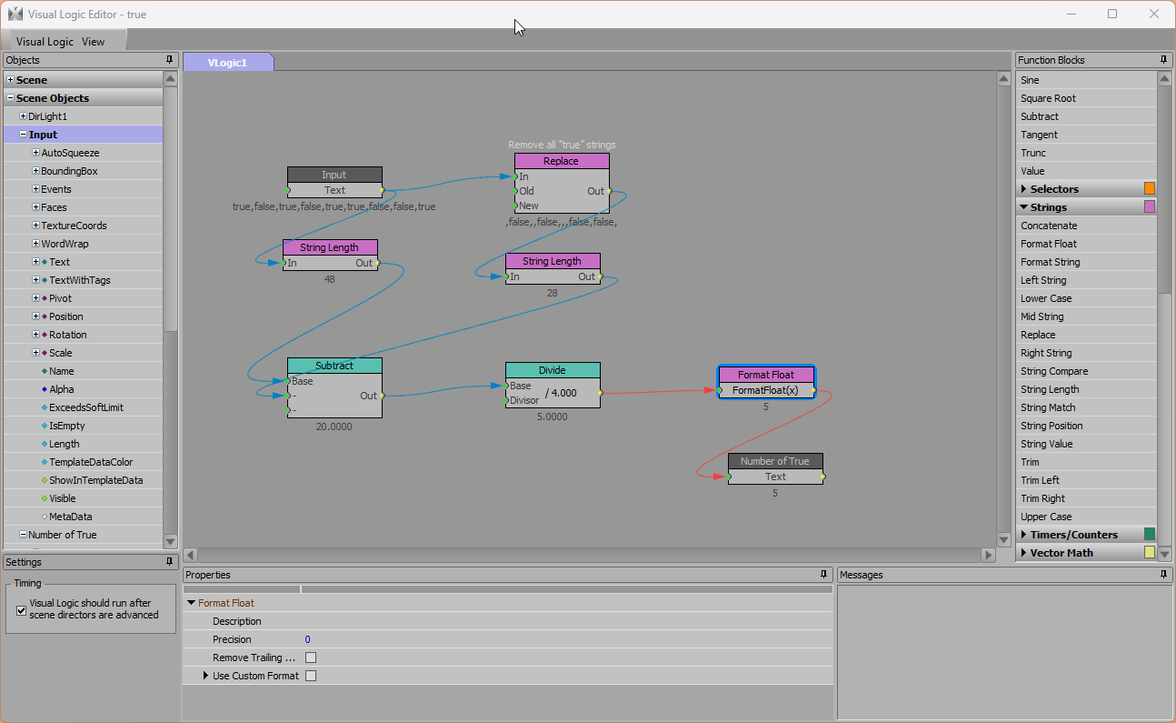I have a datalinq that pulls in as one string with commas as separators. "true, false, false, false, true, true" and I need the text to spit out the number of times that says true. I dont mind using multiple text objects if needed, but would like to pull in that datalinq and then the text object text to spit out the number of times it says true so "3" would be visible