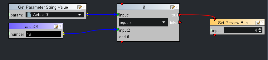 Our MC-1 does not tally based on router crosspoint changes made outside of the MC-1. This does not allow GPOs to trigger based on changes made to the router. It is also not correctly showing what is in the Program and Preview Bus. While trying to come up with a solution I came across the MC-1 API while making a custom Dashboard Panel. One option is to "Set Program Bus". It gives you a choice for input. These are the buttons on the front of the MC-1 and the buttons do tally based on the Dashboard Command. The First button is Input 0, the second is 1 and so on. The button I tested with was Input 4 and it works perfectly. Then under controls and APIs on the right side of dashboard there is a dropdown for Ogscript. There I can gather a "parameter value". For the parameter I see the MC-1 as a device. under that dropdown there is a one called "Router Status". I noticed that when I changed the router destination for the Program Bus and Preview Bus these number track to the router Inputs. In my case, button 4 is router crosspoint 19. The parameter gathered is "Actual [0]"; That refers to Background A which is the program bus. How do Iayout the script so when the "Actual" reads 19 it switches the "Set Program Bus" to input 4? I am thinking in involves a conditional "If" parameter, I just can't seem to connect the dots correctly. Any ideas? Will this be able to run in the background on dashboard?