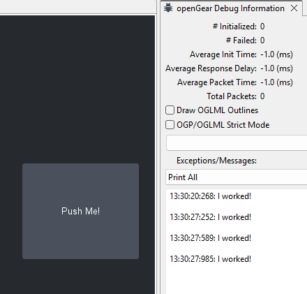 I set up my button to print a message to the Debug window, which is how I can verify the button is being remotely triggered.