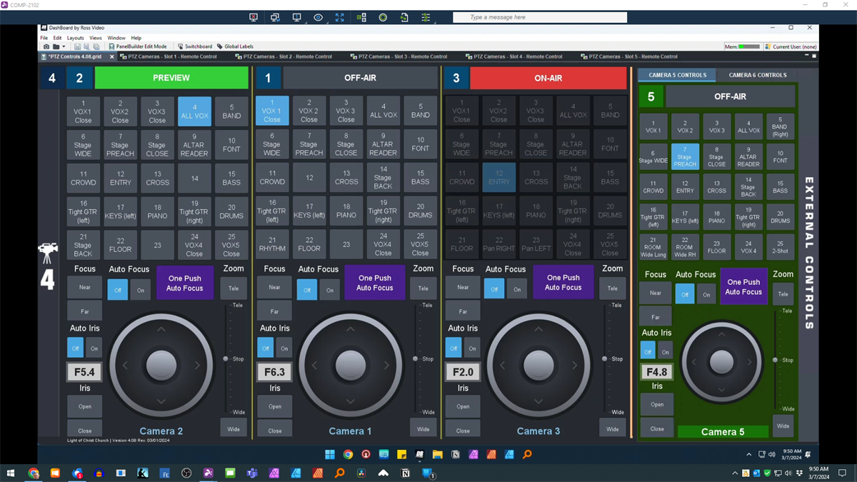 Here's my question: since Dashboard knows which camera is on program and I'm using a widget to activate a preset, can I disable the preset widget for a specific camera when the camera is live (on program) by testing the tally.state? It seems this would eliminate our issue. Although it would disable selection of a preset when the camera is on program, I would still have the ability to use the virtual joystick and zoom controls to tweak a shot. Can someone provide a code snippet for me to insert in my Dashboard grid file? I assume I'll need one for each camera and also need code to reactivate the widget when the camera is in preview or off-air. Also need to know where to place the code. If you need the code for the entire, I can provide that, too.