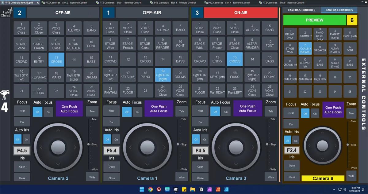 We have 5 PTZ cameras and from time to time we have an issue during a live broadcast that causes problems. While I've designed the custom control panel that we use to visually help the video director know which camera is on program, we still have occasions where, because we're trying to keep our shots moving, we inadvertently click a preset on a live shot. Here's what the panel looks like: