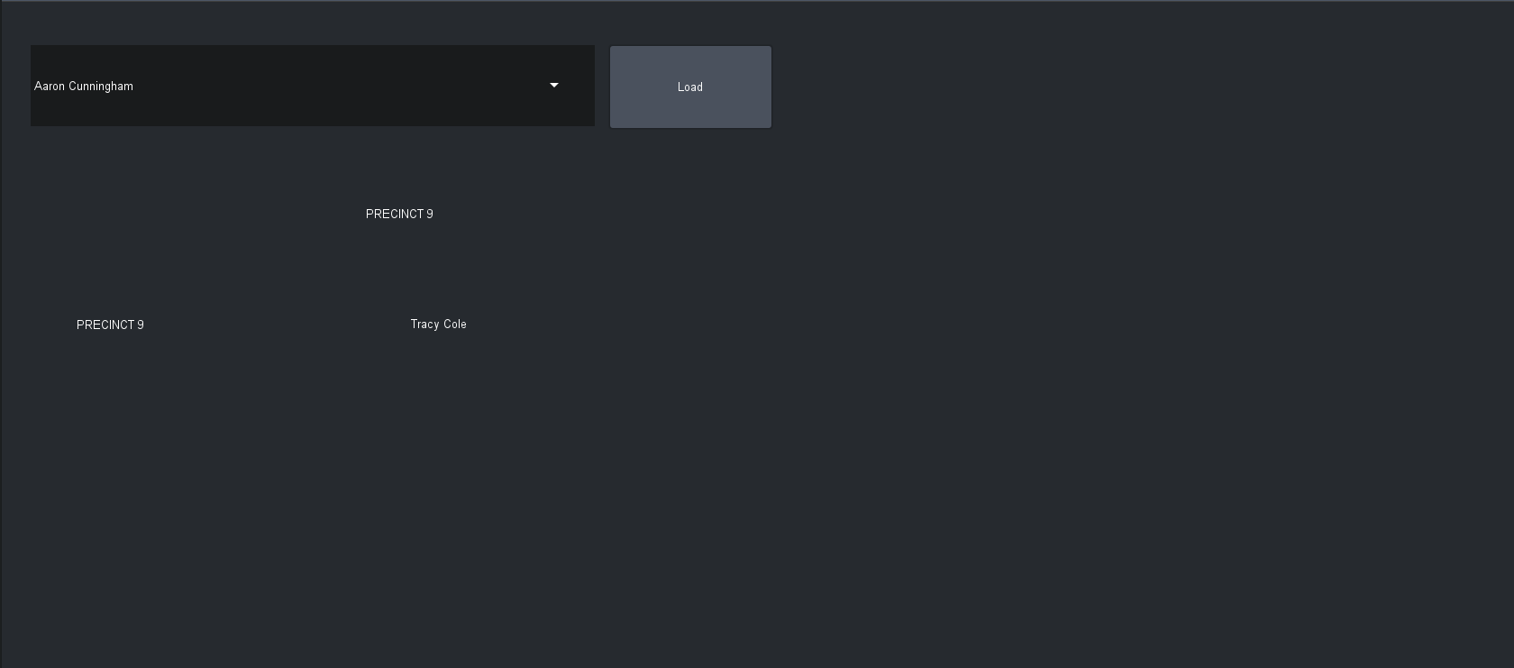 I tried implementing it on a bigger dataset and its acting a bit strange as when I type a person's name into the bar it prints a different person's name below. Along with that sometimes when I press the load button, the name in the bar also changes. I have attached a screenshot describing the problem below.