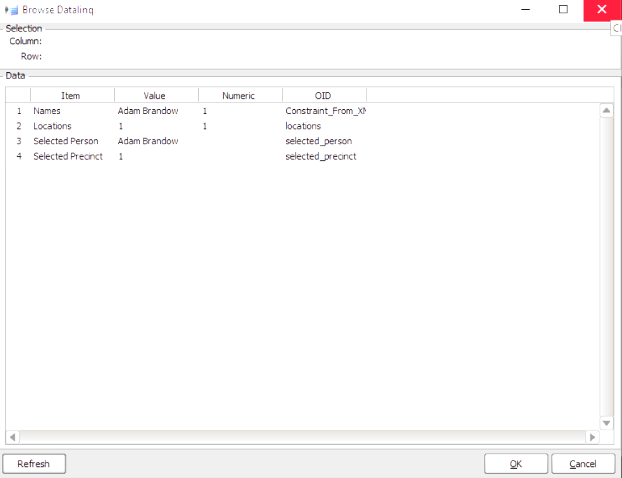 - After loading a name and value from dashboard when I check the datalinq side, it appears that only the name is loaded and not the appropriate Precinct accompanied. I have attached a screenshot describing the second issue I am facing below.