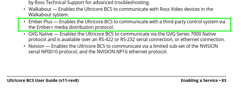 What are you trying to control via ember + in the Ultrix? This is for integration of the router matrix into the external control system.