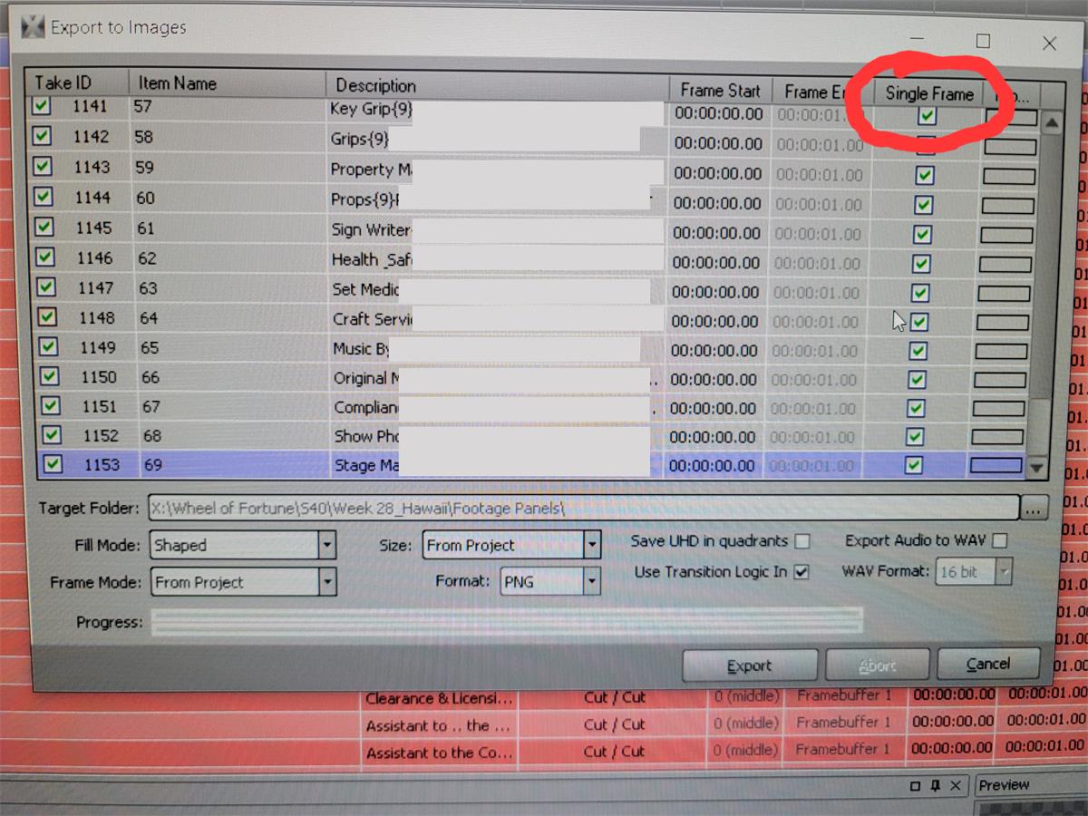 It is about 70 pages of a credits and I have to select each one then I can export all pages. Would be great to be able to just tap on the "Single Frame" tab/word then it would select all in that column.