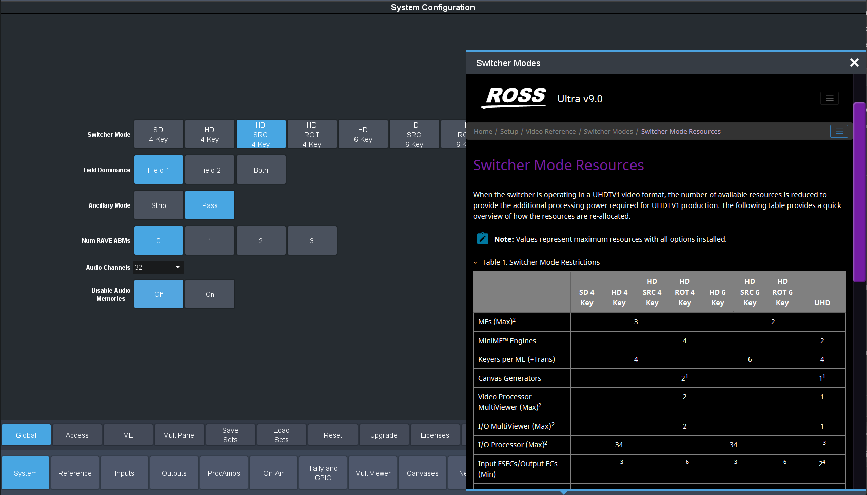 That will tell you how many you can have and then on the Global Sub Page you can see which mode you are operating in: