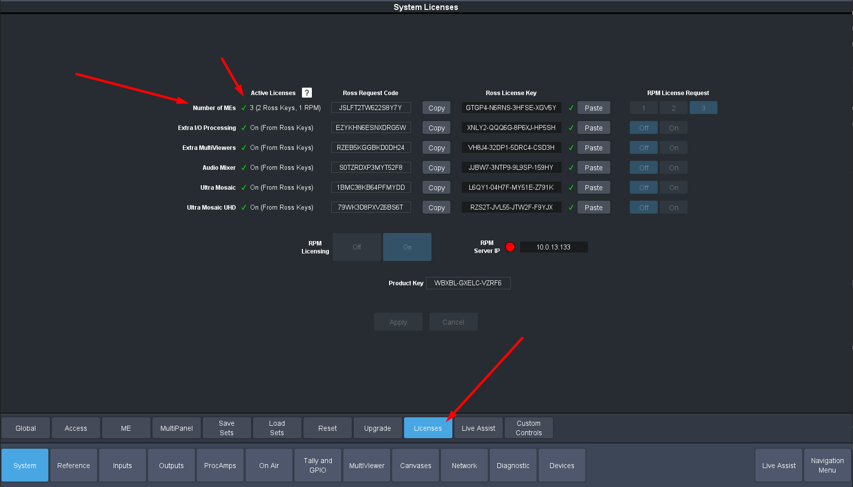 Go to the licenses page in Dashboard:
