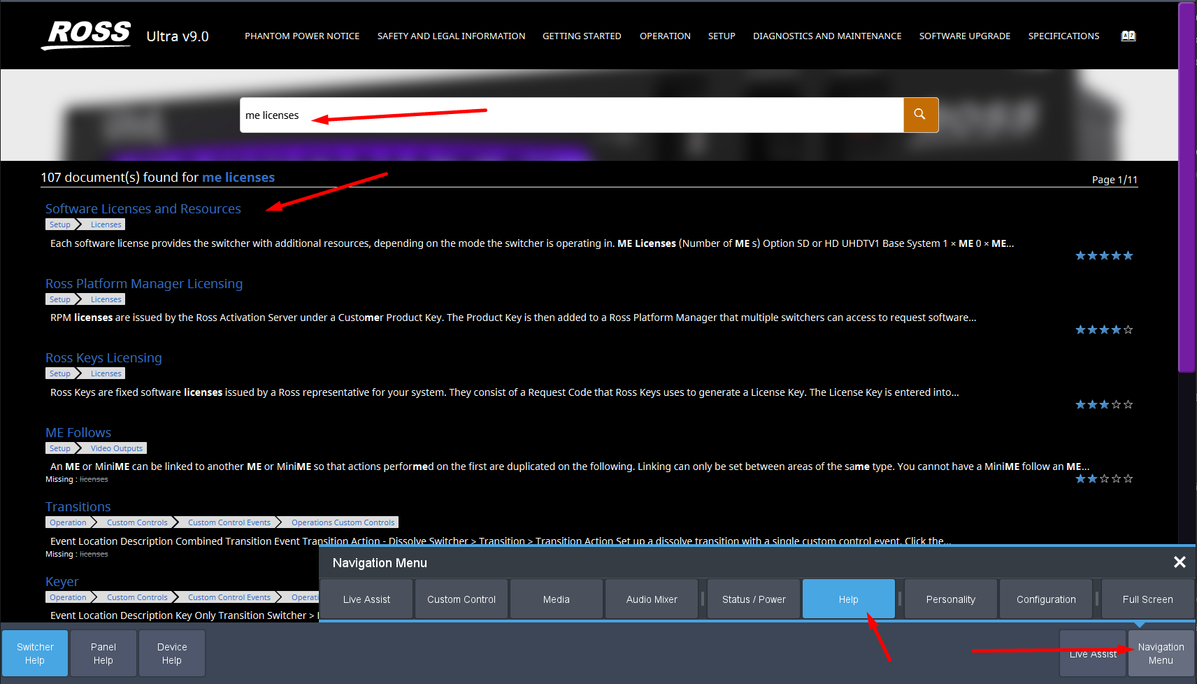 Also the help menu you can search via the build in manual like this: