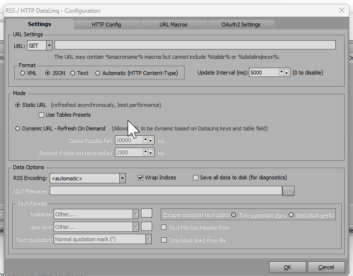 I would try adding the URL to your JSON file inside the XPression 'RSS/HTTP Datalinq source', and then setting the format to JSON.