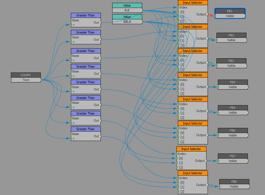 Which value dit you put in the greather than block? And did you put the index offset to another value in the input selector? And is every 0,0 value put to the '0' and every 100 value put to the '1'?