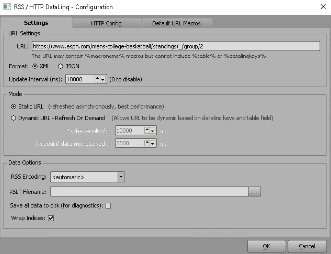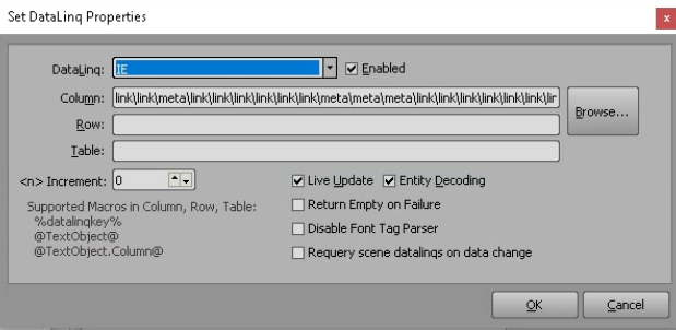 I am trying to source data from a website via Datalinq in a scene. I am able to give the address to Datalinq, it successfully reads all the data, and I can view it in the Datalinq browse tab. If I try to set the data as a datasource in the scene, it will successfully display the value as text in the scene, but then cannot update until I manually reselect browse. If I publish the text object and try to datalinq it in the sequencer, it just reverts to the default texts in that object. Is there a reason I am unable to have values update as Datalinq refreshes?