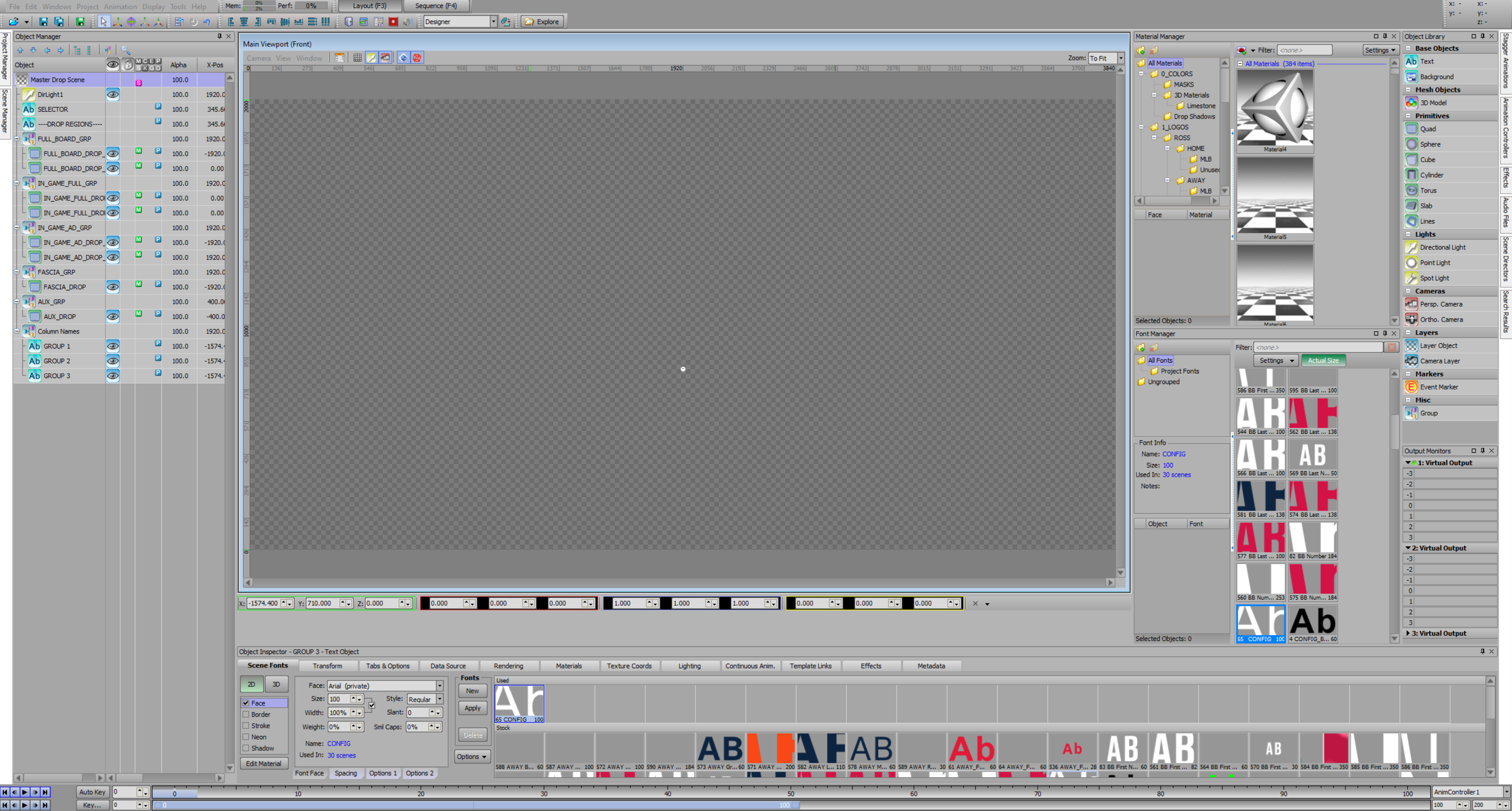 I like ot have my scene tree much larger on the left so I can see more of it, I have pinned the project manager and the scene manager to the left. I have added the material and font manager to my layout as well as the object tool bar which saves me have to switch to the transform tab in the object inspector as well.