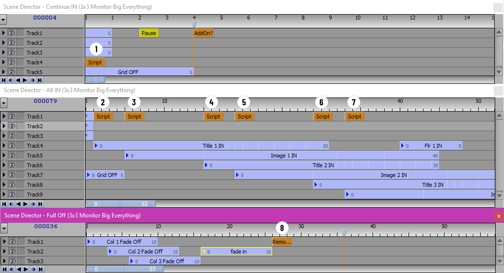 Here is an example of an IN scene that goes to the animation scene. Then the OUT scene.