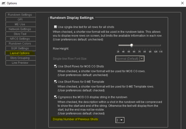 There is one setting that is not exactly what you ask, but may help in your situation, it allows you to select how many previous shot Rundown Control keeps in focus.