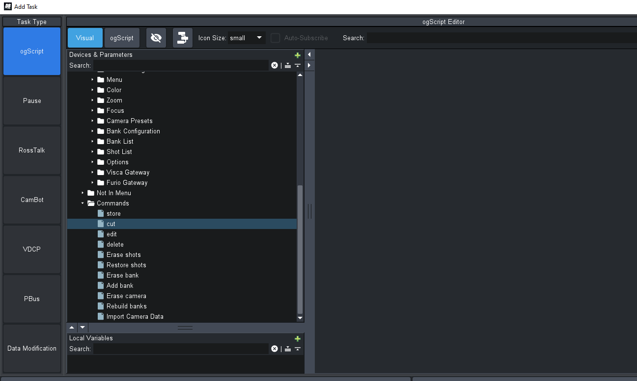 The Ross-supplied panel itself is locked for editing but you should still be able to add it as a data source in a custom panel by putting your custom panel into edit mode, double-clicking to enter the "source' view and selecting the "Device" button at the top to insert a new <context/> tag. Give the context an ID and select the Sony camera and its API should become available within Visual Logic and its parameters should be available to add to your panel using the custom panel toolbar.