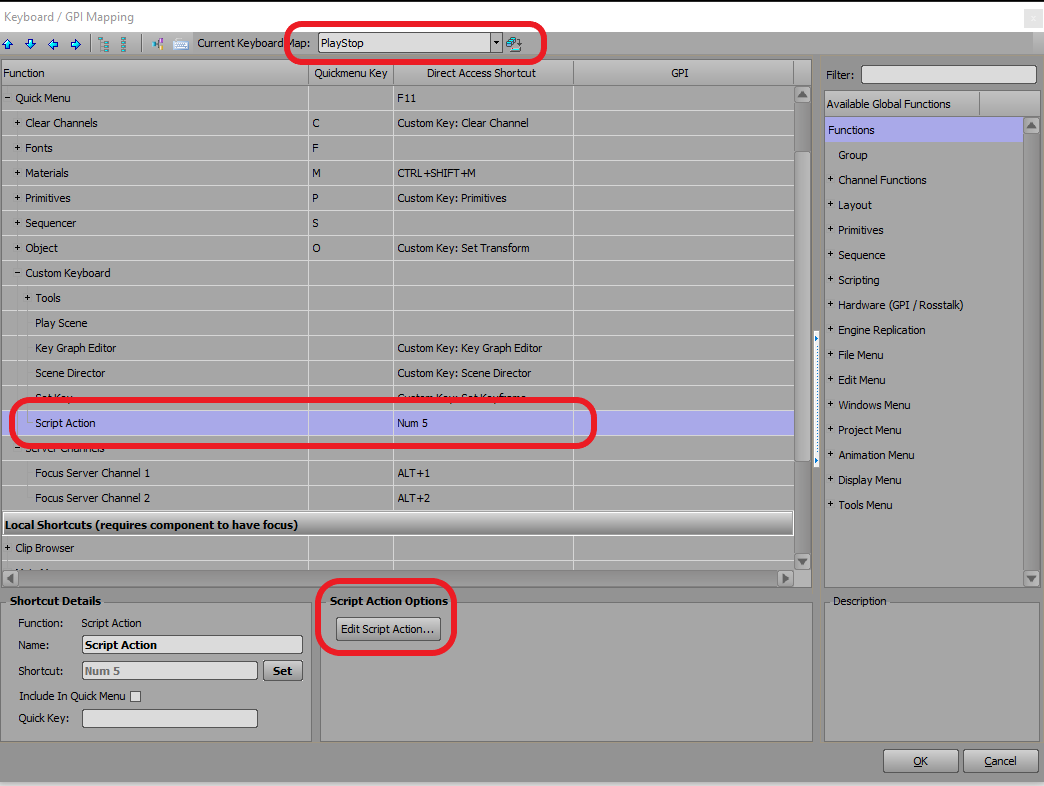 You will need to put the PlayStop.kbd file into the C:\Program Files\XpressionTessera folder. Then run your XpressionTessera and in your Keyboard/GPI Mapping, select PlayStop. In Edit Script Action, change the script for Tessera