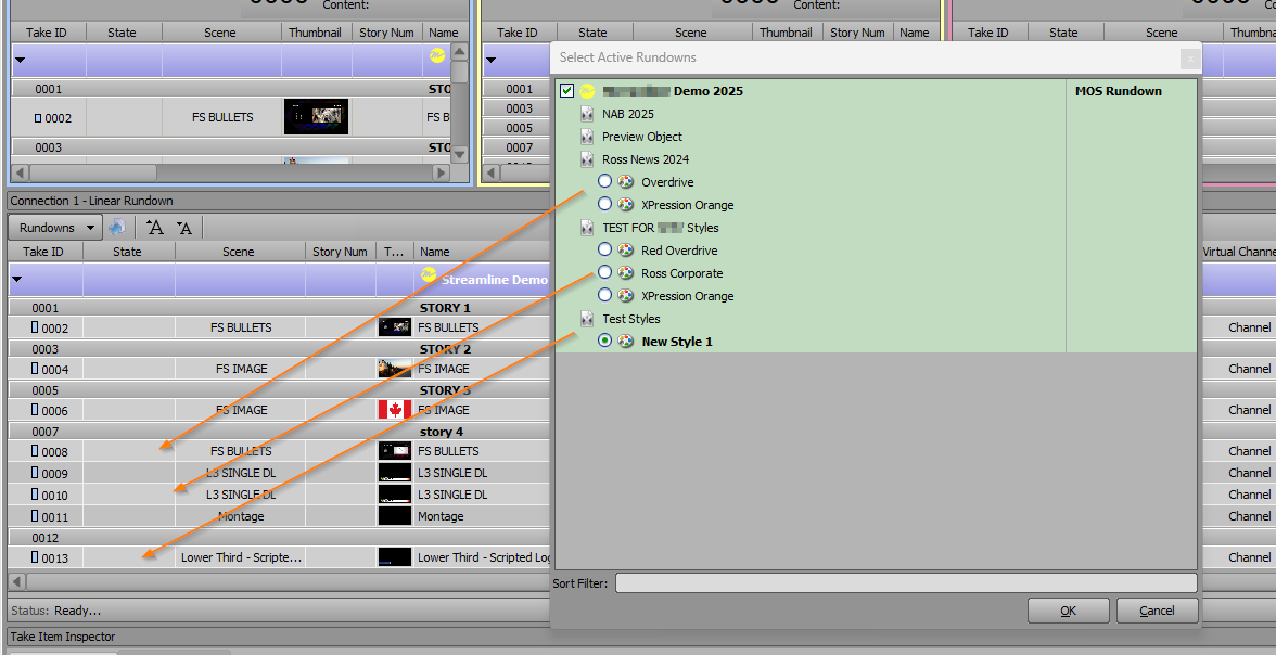 If I went back into the Select Active Rundowns dialog and changed to one of the other selectable styles for those shows, XPression would unload the project for the style it opened, and open the project of the style I chose. But if a show only has one style, there's no way to deselect and/or reselect it without unloading the entire project.