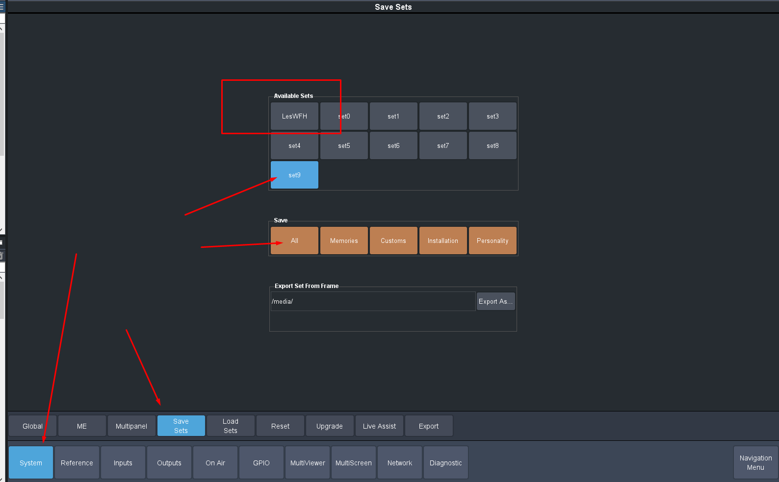 Then don't forget to make sure to save this to your File set ... since this is kind of Like Memory 00000 so to speak and will load with your file sets when you do a Recall (example is Set 9 .. but you can always use FTP to edit the folder or even add folders with other names and they will show up)
