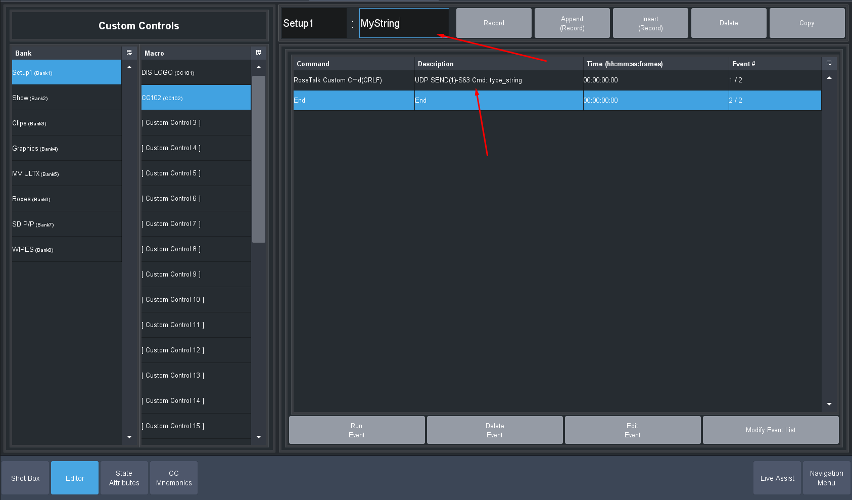 Now You Type in the String you want to send and press the INSERT button to add it to your custom control: