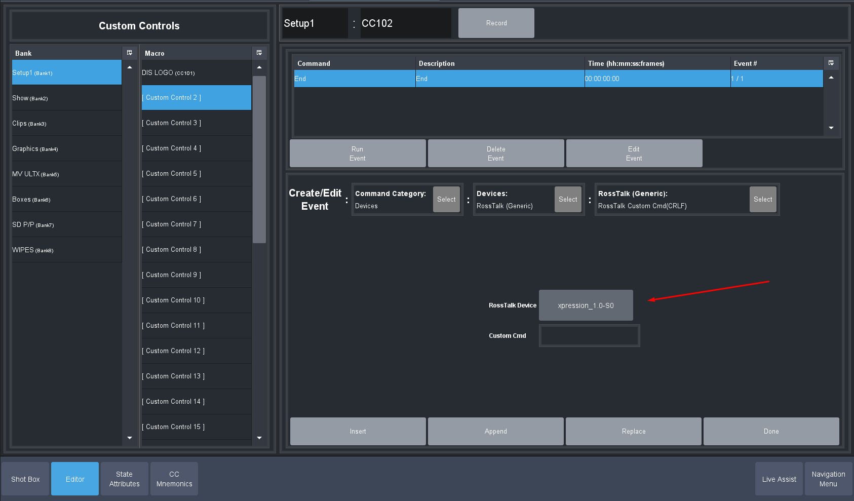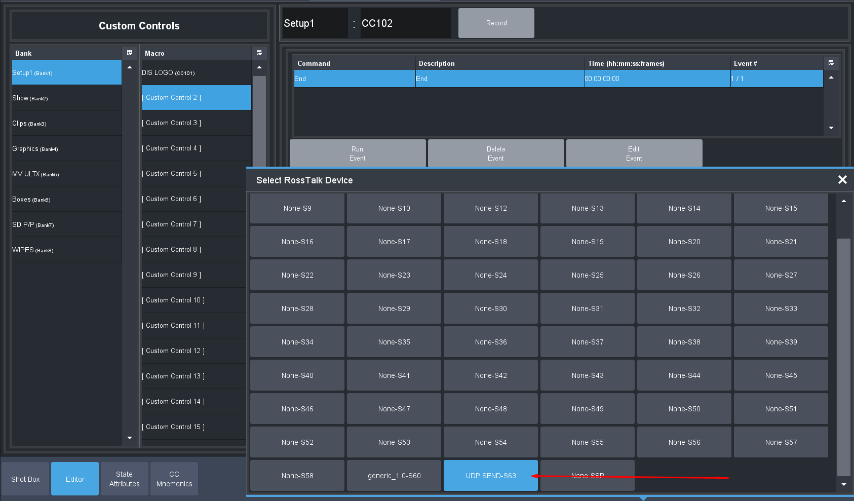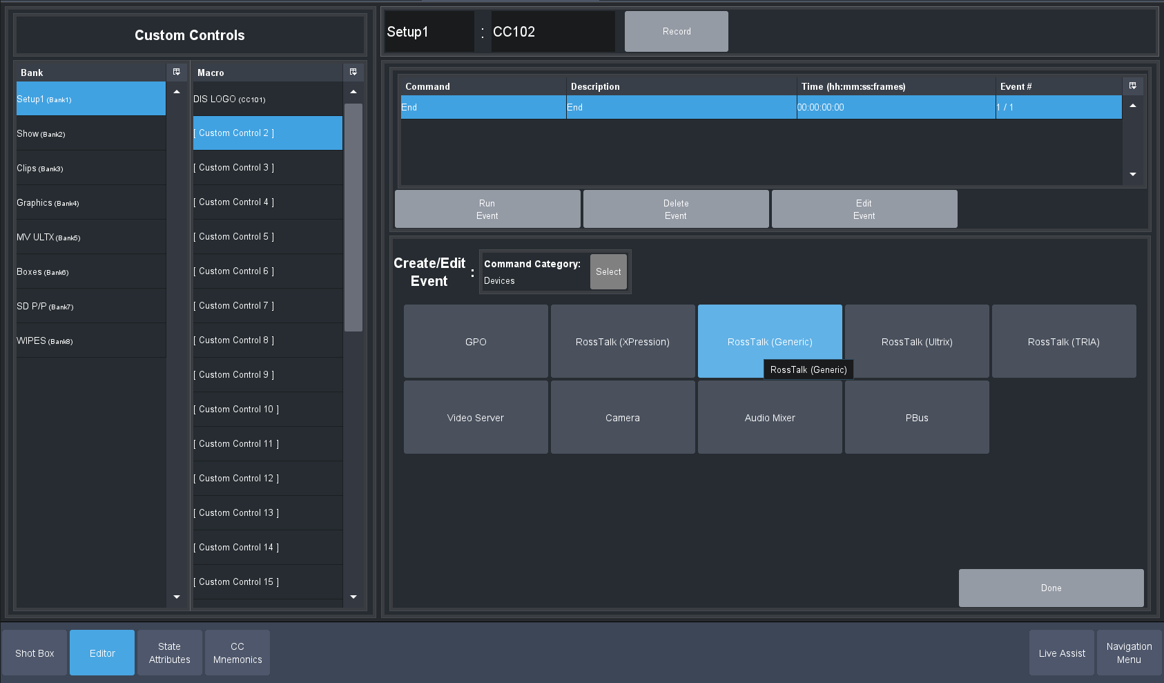 Edit a custom Control you will use -- Modify Event list and select Devices. Pick the Generic Ross Talk Device: