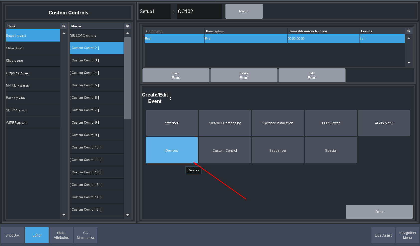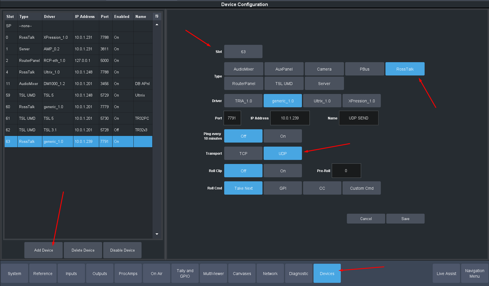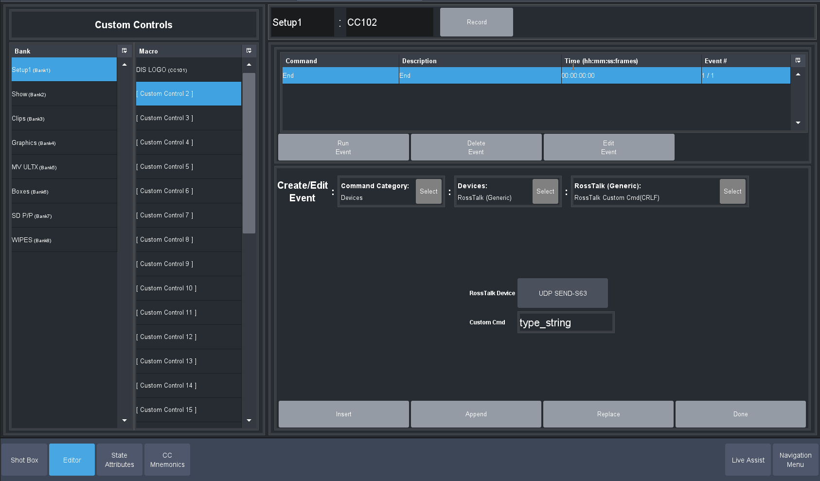 Edit a custom Control you will use -- Modify Event list and select Devices. Pick the Generic Ross Talk Device: