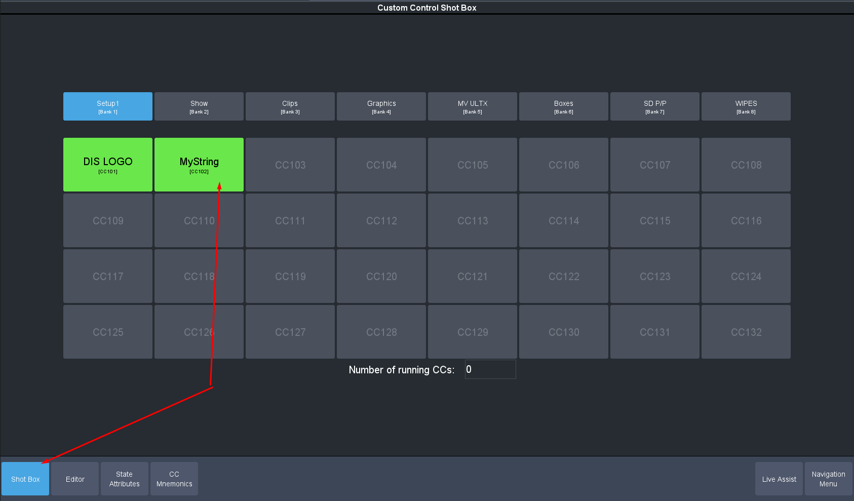 Now go to the "shot box" page and press the Button to send the string out.