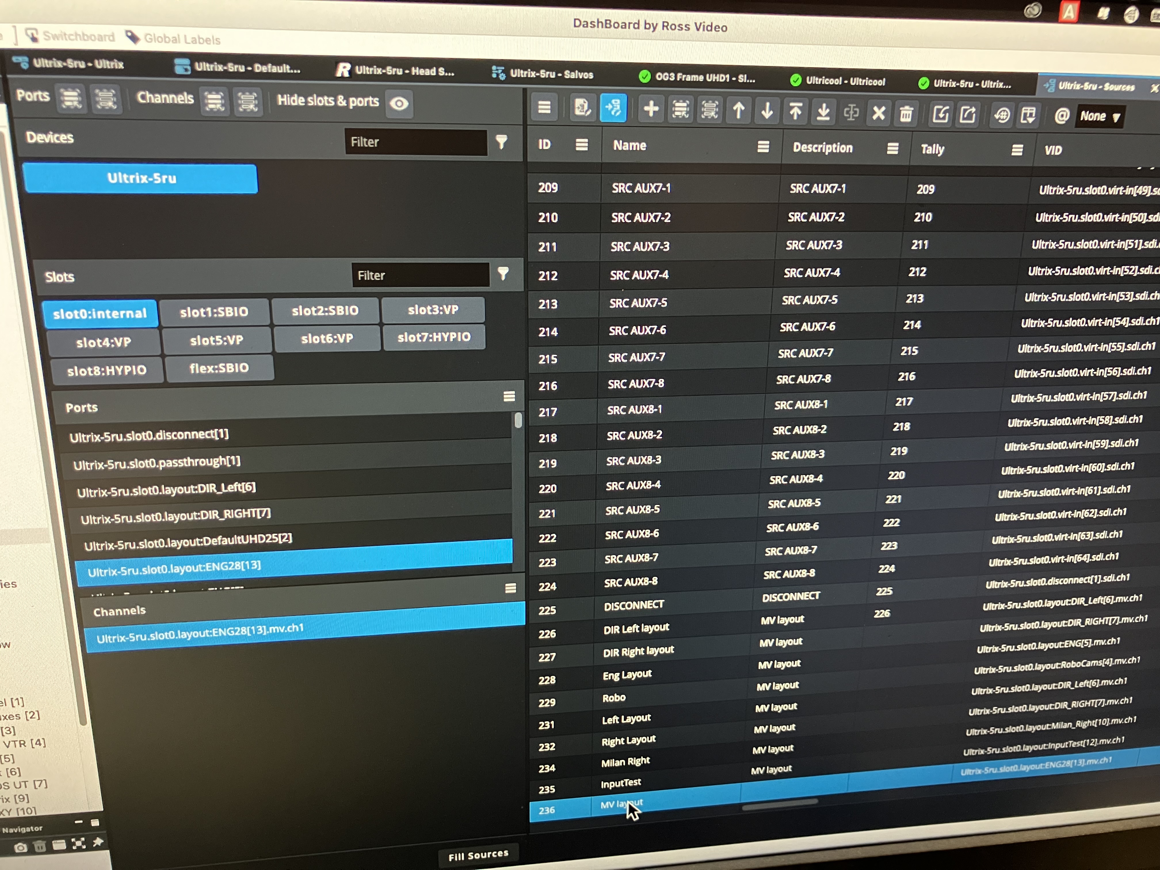 Now that you have a Layout source to take for your Multi Viewer, you can make your Salvo! The next Picture shows how you can take your newly made source and put it into the Multivewer. (The top row is the source that you just made for your different layouts)