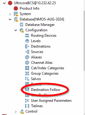 Are you assigning Desitnation Follows through the Ultriscape head selection or the Destination Follow database menu?