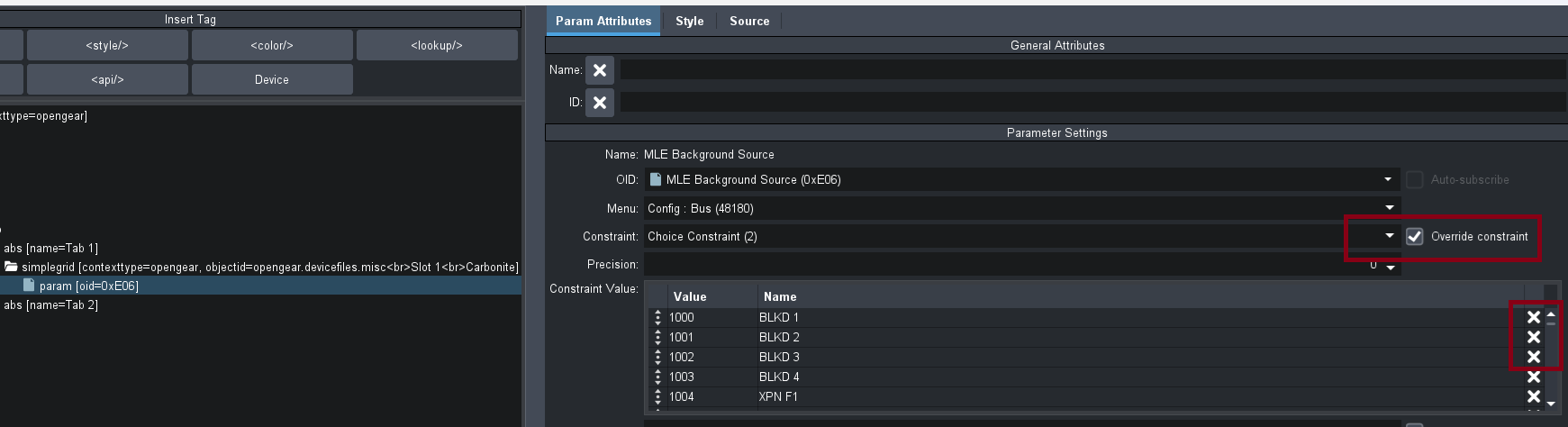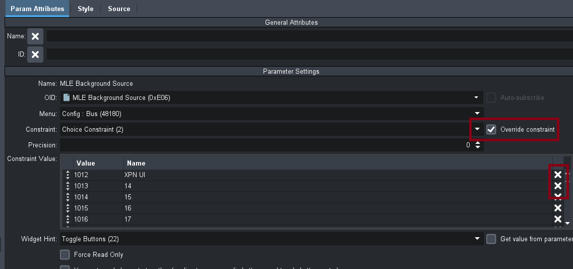 You can double click the element you added, override the constraint for the parameter, and delete any sources you don't need.