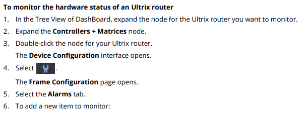 I recently got the License to be able to use SNMP. I am going to setup the monitoring, however on my FR5, I can find the Icon indicated in step 4 within Controller and Matricies. Does anyone know where I can find this setup? There is an alarm area to setup Alarm Relays, does the information populated here also apply to SNMP or is there another location?
