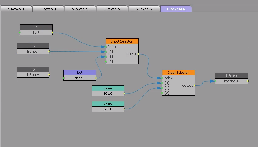 What I am running into now is that the Position.X on both the MASK & T Score Group are staying put and not reseting back to original state "If Empty"