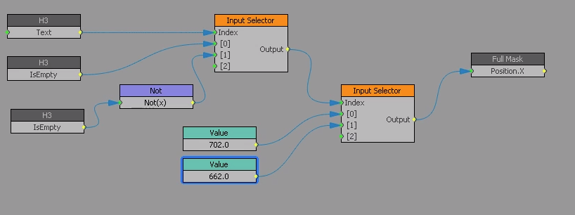 Its somewhere along the lines of, when H3 Text field is filled out, MASK & T SCORE group move 40px to the RIGHT