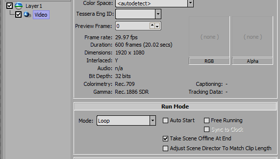 I could build a take offline into the scene director, but the random animations may not always be the same length. So I guess my question would be is it possible to have a datalinq video material play once and take scene offline at end?