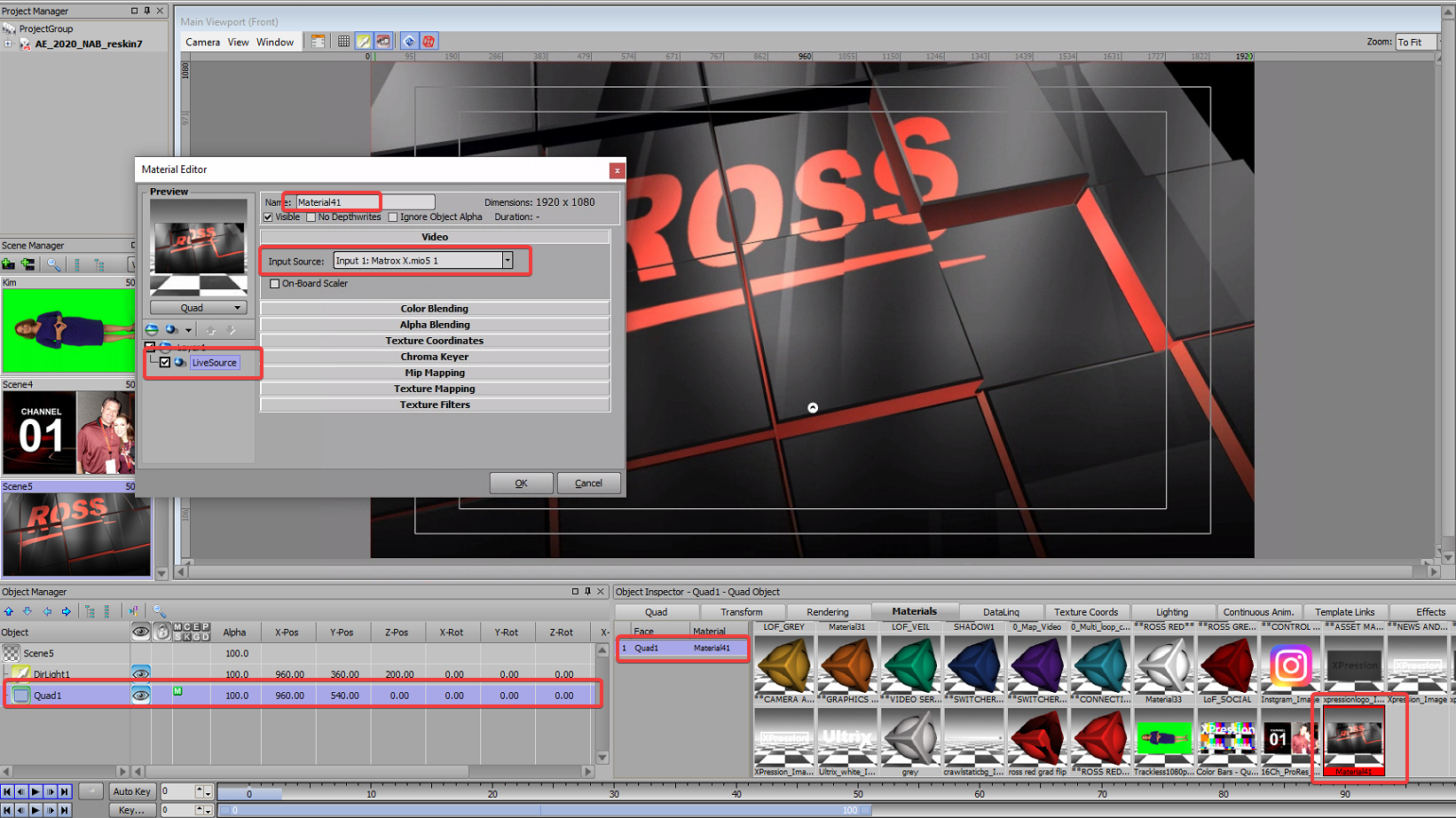 Hey all, I have my live video input set and material made, the Matrox card is detecting it correctly and I verified I have video going to it (checked the cable to a test monitor) but when I apply the live source material to a quad, it's just black, am I missing something?