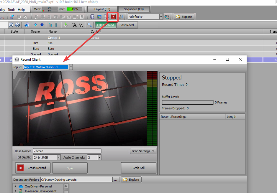 Do you see the live input video inside the XPression Record client?