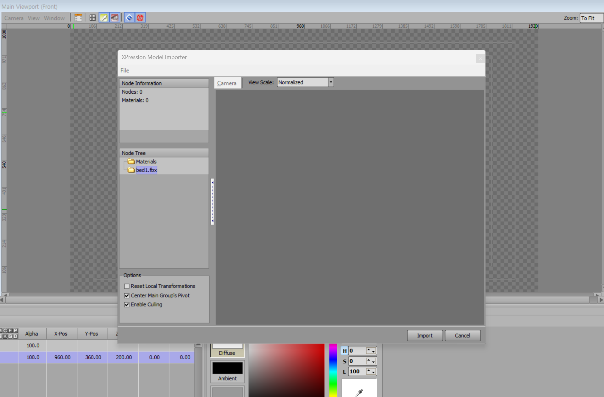 When you import an FBX, OBJ file from XPression, the object is not visible on the screen.